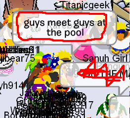 LOL okay so I was logging on to Cp today onto the server Mammoth right? And like usual the first room they put me in was the Town, then I saw this penguin blurt out "guys meet guys at the pool!" LOL now if they were meaning as to meet guy friends to be buddies that's ok, but if they meant more than buddies that is just wrong!! x3